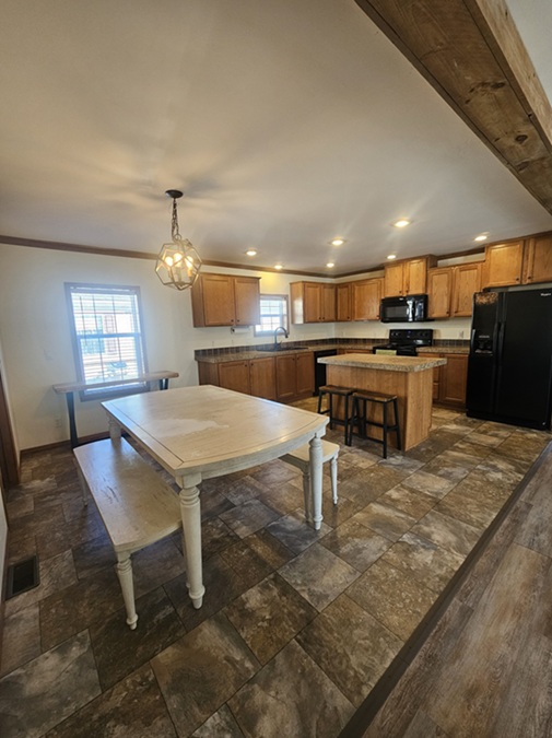 • Spacious Kitchen with Island and Bar Stools